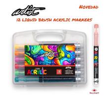 ROTULADOR ACRILICO PINCEL ALEX BOG LIQUID BRUSH MALETA REGALO 12 COLORES AB-0664